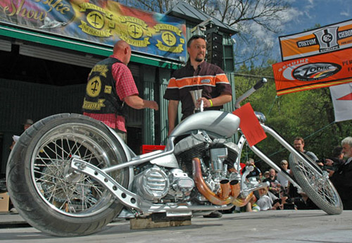 An added highlight of Twin Club MC's Custom Bike Show is the traditional after-show party back at their club house outside of town. They have a huge clubhouse surrounded by a meadow and woods. About 3,500 bikers took advantage of their hospitality and attended the party and many camped out for the weekend. Man, I gotta tell you, I'm an old Gray Beard and I sorely miss the all night parties with the real deal ladies and hardcore dudes who graced the scene long before the Discovery Channel convinced everyone with a Gold Card that they too could be "Bad-Ass Bikers".